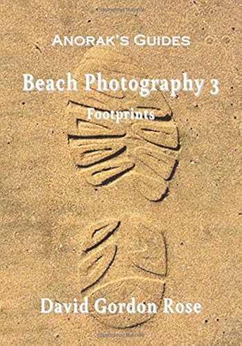 This is volume three in the author’s Beach Photography series published in Anorak’s Guides. It shows 322 footprints plus pictures mostly of dog situations as these pets are inseperable from humans on beaches. The volume is in a seven inch by ten inch format and is the companion to Beach Photography 4 Footprints bare. The variation of patterns on the underside of footwear imprinted on the beach was a surprise. For male shoes the designs are predictably chunky and non-slip. Practical, dare I say. Female footwear, when not smaller versions of the male shoe, is narrower with a pointed toe and with finer detail on the sole. Artistic design with an oriental element shows. The samples in the book were photographed over three years around France, the United Kingdom and Ireland. As with impressions made by bare feet, to find and photograph the perfect shod footprint is a delight.David Gordon Rose is an author, photographer and publisher.
